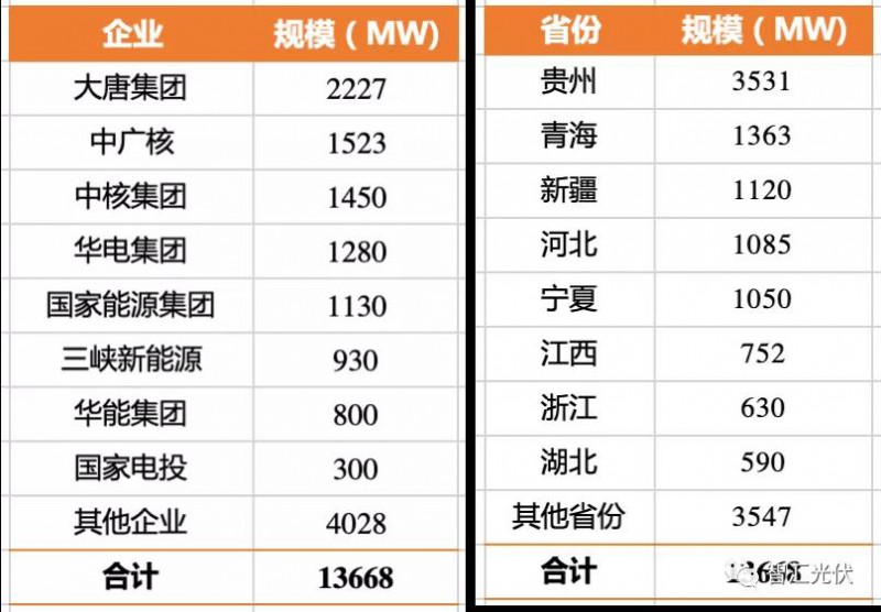 根據(jù)之前對EPC招標(biāo)的跟蹤,不完全統(tǒng)計,近期至少有13.67GW的大型地面電站開標(biāo)、計劃年底前并網(wǎng),組件需求基本產(chǎn)生在4季度。具體分布情況如表1所示。