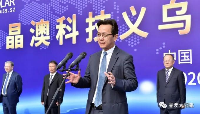 金華市委常委、義烏市委書記林毅在致辭中表示,晶澳義烏項目將帶動義烏人才科技集聚質(zhì)的改變,帶動義烏產(chǎn)業(yè)結構轉(zhuǎn)型升級和高端制造集群發(fā)展。項目僅用142天,就建成全球最大的光伏智能單體車間,再次刷新了“當年簽約、當年開工、當年投產(chǎn)”的義烏項目建設速度。