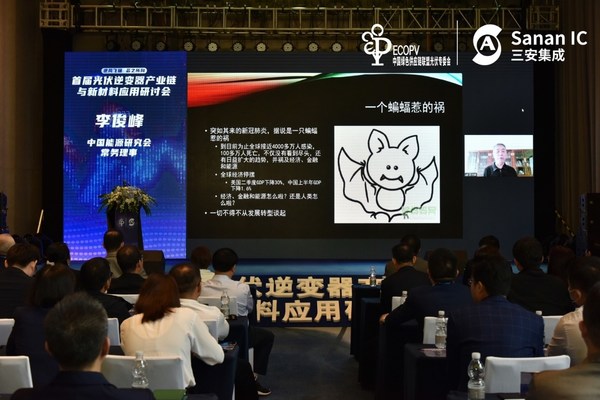 此次研討會(huì)由中國綠色供應(yīng)鏈聯(lián)盟光伏專委會(huì)主辦,廈門市三安集成電路有限公司承辦。出席本次研討會(huì)的嘉賓包括:工業(yè)和信息化部電子信息司副司長楊旭東,工業(yè)和信息化部電子信息司電子基礎(chǔ)處金磊,工業(yè)和信息化部國際經(jīng)濟(jì)技術(shù)合作中心主任、中國綠色供應(yīng)鏈聯(lián)盟副理事長兼秘書長鄭紅,中國綠色供應(yīng)鏈聯(lián)盟光伏專委會(huì)主任沈輝、秘書長呂芳,中國能源研究會(huì)常務(wù)理事李俊峰,工業(yè)和信息化部國際經(jīng)濟(jì)技術(shù)合作中心能源資源環(huán)境研究所所長毛濤等等行業(yè)專家、研究機(jī)構(gòu)、發(fā)電公司、光伏逆變器企業(yè)、媒體的近百位嘉賓蒞臨。原國務(wù)院參事、中國可再生能源學(xué)會(huì)第七、八屆理事長石定寰通過視頻的方式向本次研討會(huì)的召開送上賀詞,提出對(duì)光伏逆變器產(chǎn)業(yè)鏈的期許。