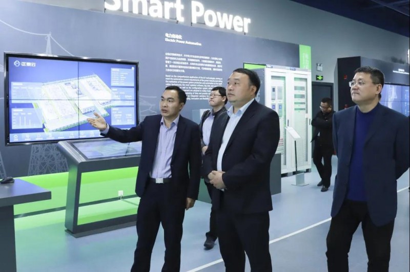 在正泰創(chuàng)新體驗(yàn)中心,周承軍、王荃等向周小三副市長一行詳細(xì)介紹正泰基于“一云兩網(wǎng)”面向智慧能源、智慧電力、智慧工業(yè)、智慧制造等領(lǐng)域提供的解決方案、應(yīng)用案例等。并就克拉瑪依市政府興趣頗濃的打造科創(chuàng)城市、智慧城市、零碳城市等方面交流討論。
