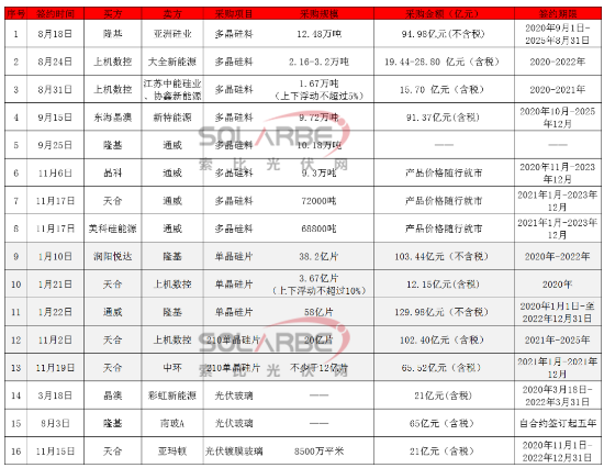 上半年的組件出貨冠軍晶科鎖定通威9.3萬噸多晶硅料,訂單鎖量不鎖價(jià),產(chǎn)品價(jià)格隨行就市,供應(yīng)期從2020年11月到2023年12月。