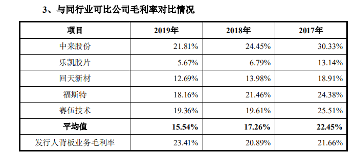從幾個重要同行的可比角度來看,明冠新材的背板毛利率于去年達23.41%,次于中來股份,與福斯特、賽伍技術(shù)的毛利率較相似??梢躁P(guān)注的是,明冠新材在2019年的業(yè)務毛利率,相比2017年和2018年都略有增加。