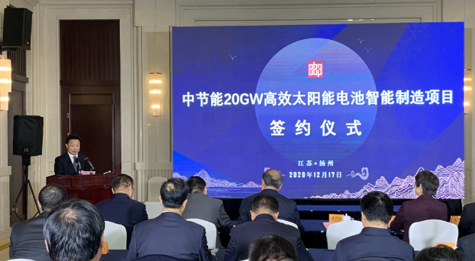 中節(jié)能太陽能科技高郵有限公司作為項目的建設(shè)運營主體已正式注冊成立,項目占地800畝,計劃投資規(guī)模110億元,規(guī)劃建設(shè)三棟標準化廠房,實現(xiàn)20GW高效晶硅電池項目建設(shè)。項目一期預(yù)計2021年底前建成投產(chǎn)。