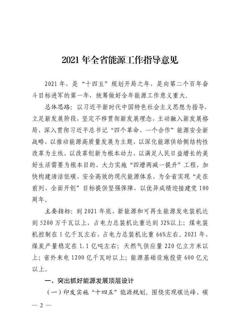 山東省能源局:關于印發(fā)2021年全省能源工作指導意見的通知