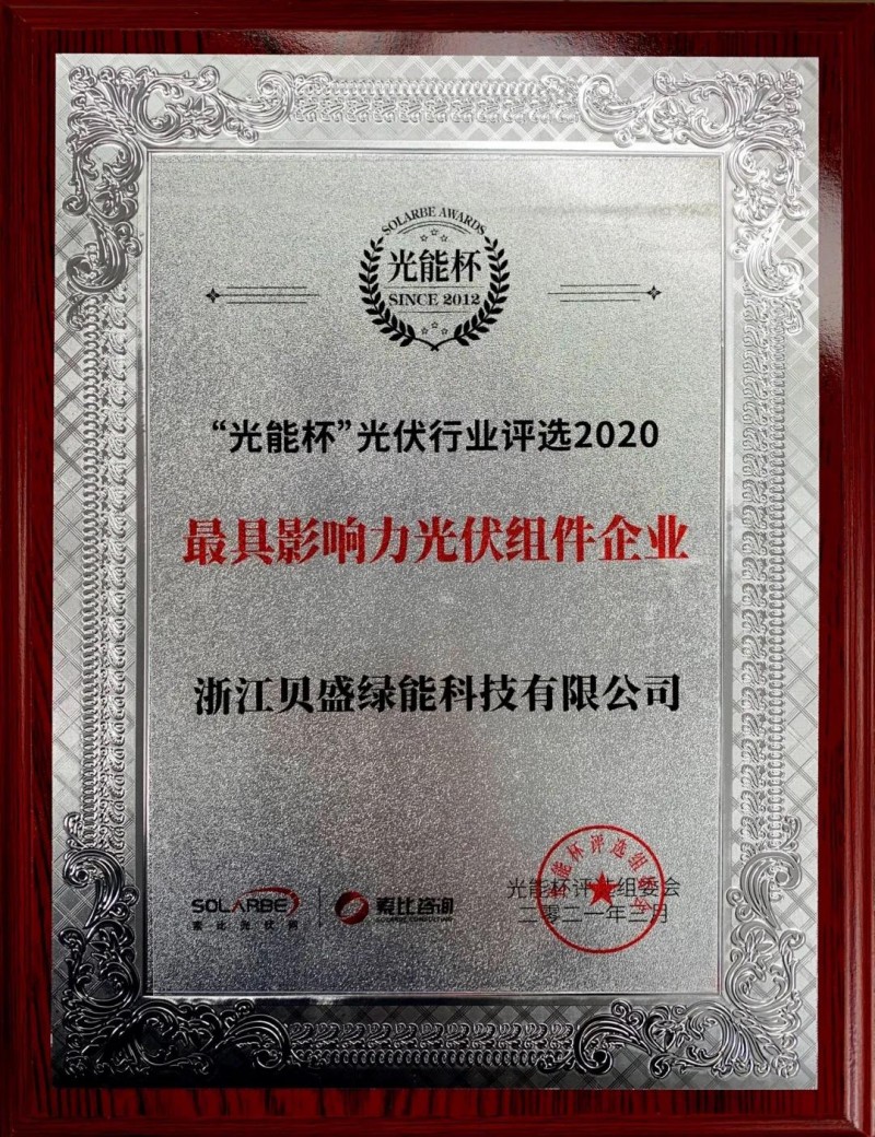 2020“光能杯”頒獎現(xiàn)場、貝盛綠能獎牌