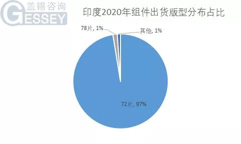 蓋錫數(shù)據(jù)顯示,截至2020年末印度市場(chǎng)光伏組件出貨量中,多晶組件占比53%,72片組件占比97%,330W,335W,405W位列功率占比前三名。多晶大版型在印度市場(chǎng)仍然占據(jù)較大比例。