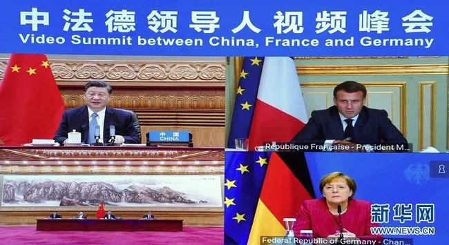4月16日下午,國(guó)家主席習(xí)近平在北京同法國(guó)總統(tǒng)馬克龍、德國(guó)總理默克爾舉行中法德領(lǐng)導(dǎo)人視頻峰會(huì)。三國(guó)領(lǐng)導(dǎo)人就合作應(yīng)對(duì)氣候變化、中歐關(guān)系、抗疫合作以及重大國(guó)際和地區(qū)問(wèn)題深入交換意見。