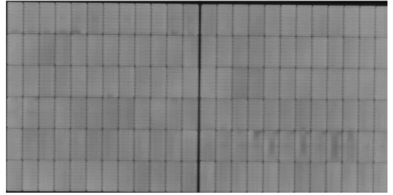 同時(shí),他們也對(duì)2.0mm雙玻組件進(jìn)行了冰雹測(cè)試,用直徑25mm的冰球在23m/s的速度下對(duì)組件進(jìn)行沖擊,再對(duì)組件進(jìn)行EL檢測(cè),結(jié)果顯示:電池?zé)o隱裂,功率亦無(wú)衰減。