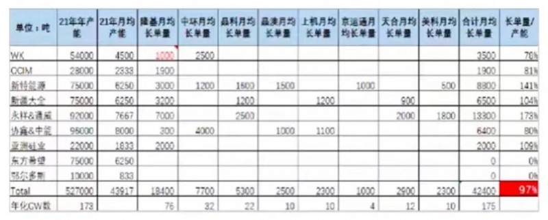 Solarwit通過統(tǒng)計(jì)后發(fā)現(xiàn),全行業(yè)2021年僅有的52.7萬噸硅料產(chǎn)出,已被下游企業(yè)通過長(zhǎng)約鎖定的方式鎖定掉了97%。2021年,國(guó)內(nèi)大約只有5萬噸新增硅料產(chǎn)量,而這些產(chǎn)能一經(jīng)釋放也會(huì)很快被鎖定,拿不到硅料的企業(yè)或許只能“餓死”。