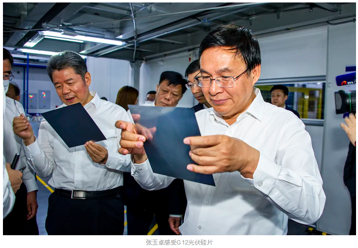 張玉卓參觀了中環(huán)股份G12智慧工廠,詳細(xì)了解了G12產(chǎn)品技術(shù)、性能與生產(chǎn)制造工藝,親身感受了中環(huán)股份工業(yè)4.0設(shè)計(jì)理念下自動(dòng)化、智能化、智慧化的柔性制造生產(chǎn)模式,對(duì)中環(huán)股份在產(chǎn)品、工藝與智能制造方面取得成果表示贊許。