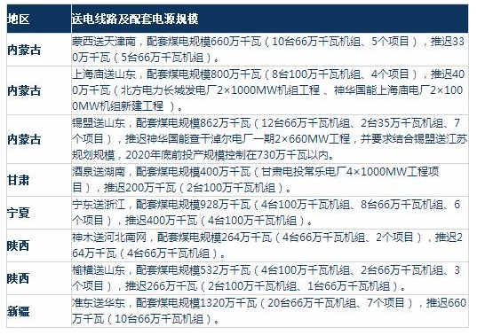圖表7部分推遲到“十四五”及以后的煤電外送項目