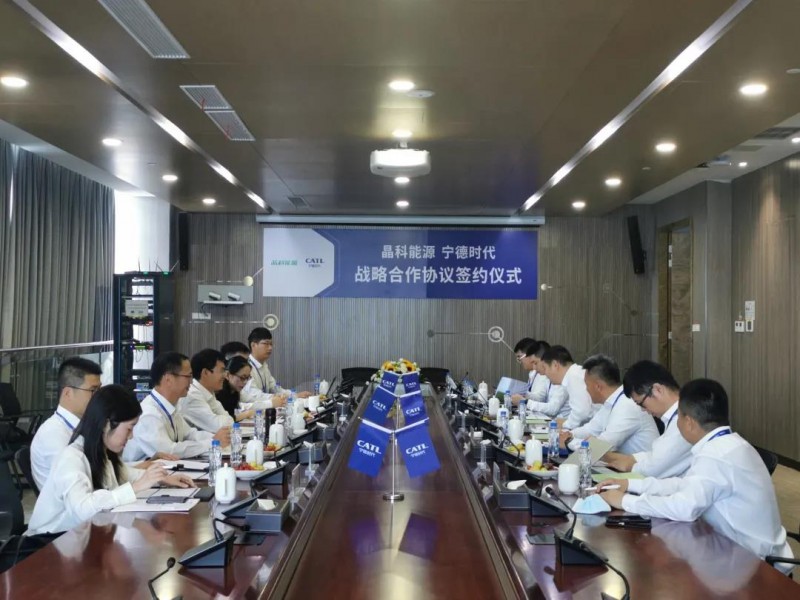 晶科能源首席執(zhí)行官陳康平、副總裁錢晶、副總裁王發(fā)萬,寧德時代總裁周佳、首席客戶官&儲能事業(yè)部總裁譚立斌、儲能業(yè)務部總經(jīng)理朱巖松等領導出席本次簽約儀式。