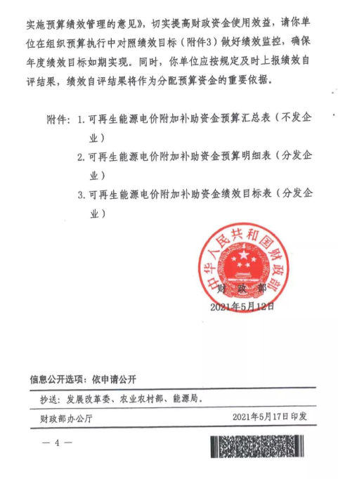 附件:《財(cái)政部關(guān)于下達(dá)2021年可再生能源電價(jià)附加補(bǔ)助資金預(yù)算的通知》(財(cái)資〔2021〕94號(hào))