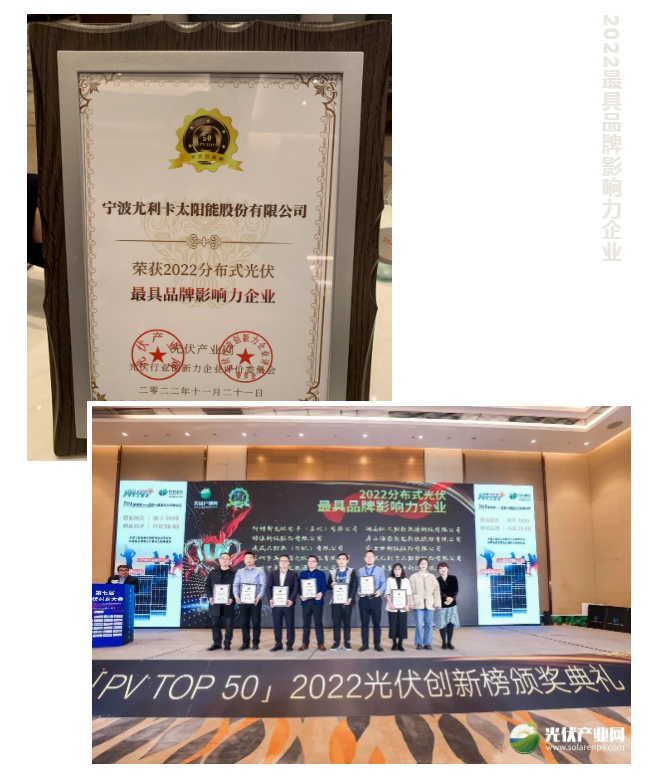 尤利卡太陽能作為特別協(xié)辦單位,受邀出席此次盛會,并榮獲包含2022光伏行業(yè)最具創(chuàng)新電池片/組件企業(yè)、2022分布式光伏最具品牌影響力企業(yè)在內(nèi)的雙料大獎,實至名歸。