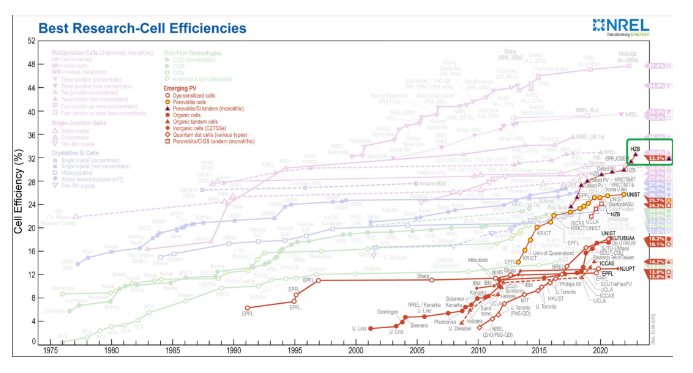 在此之前,2022年8月瑞士洛桑聯(lián)邦理工學(xué)院(EPFL)和瑞士電子與微技術(shù)中心(CSEM)宣布,合作創(chuàng)造了鈣鈦礦/硅疊層太陽能電池新的轉(zhuǎn)化效率世界紀(jì)錄,突破了30%的里程碑,獲得美國能源部國家可再生能源實驗室的權(quán)威認(rèn)證。
