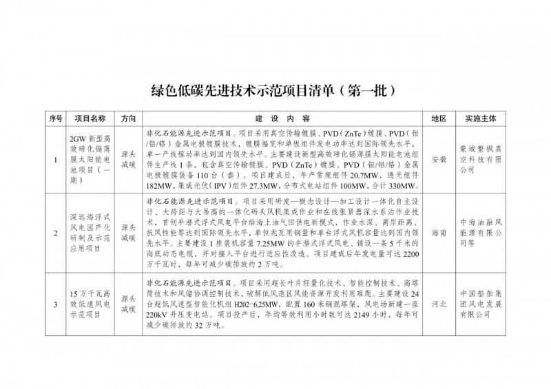 國家發(fā)展改革委辦公廳關(guān)于印發(fā)《綠色低碳先進(jìn)技術(shù)示范項(xiàng)目清單(第一批)》的通知