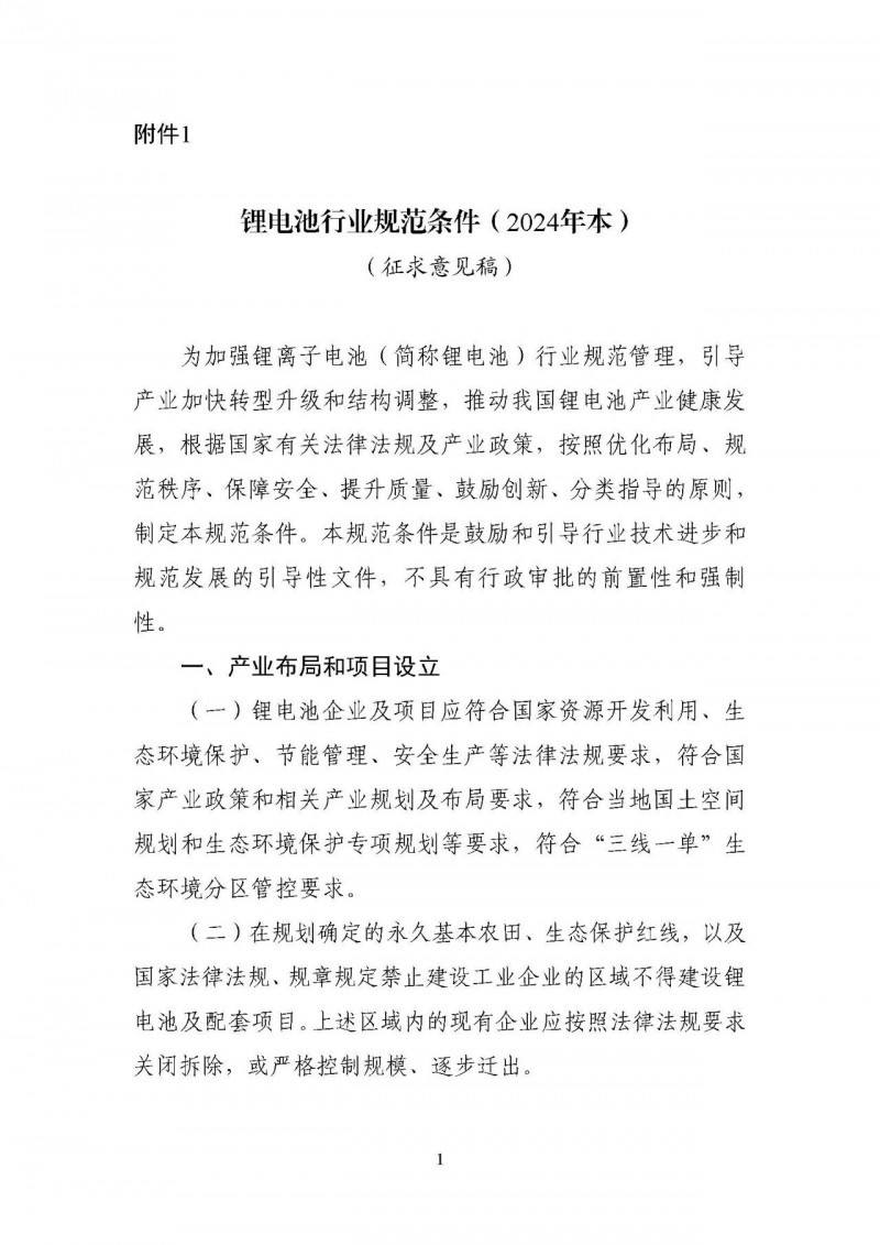 為進一步加強鋰離子電池行業(yè)管理,促進行業(yè)高質(zhì)量發(fā)展,工業(yè)和信息化部電子信息司對《鋰離子電池行業(yè)規(guī)范條件(2021年本)》《鋰離子電池行業(yè)規(guī)范公告管理辦法(2021年本)》進行修訂,形成《鋰電池行業(yè)規(guī)范條件(2024年本)》《鋰電池行業(yè)規(guī)范公告管理辦法(2024年本)》(征求意見稿),現(xiàn)公開征求意見。如有意見或建議,請于2024年5月13日前反饋至工業(yè)和信息化部電子信息司。
