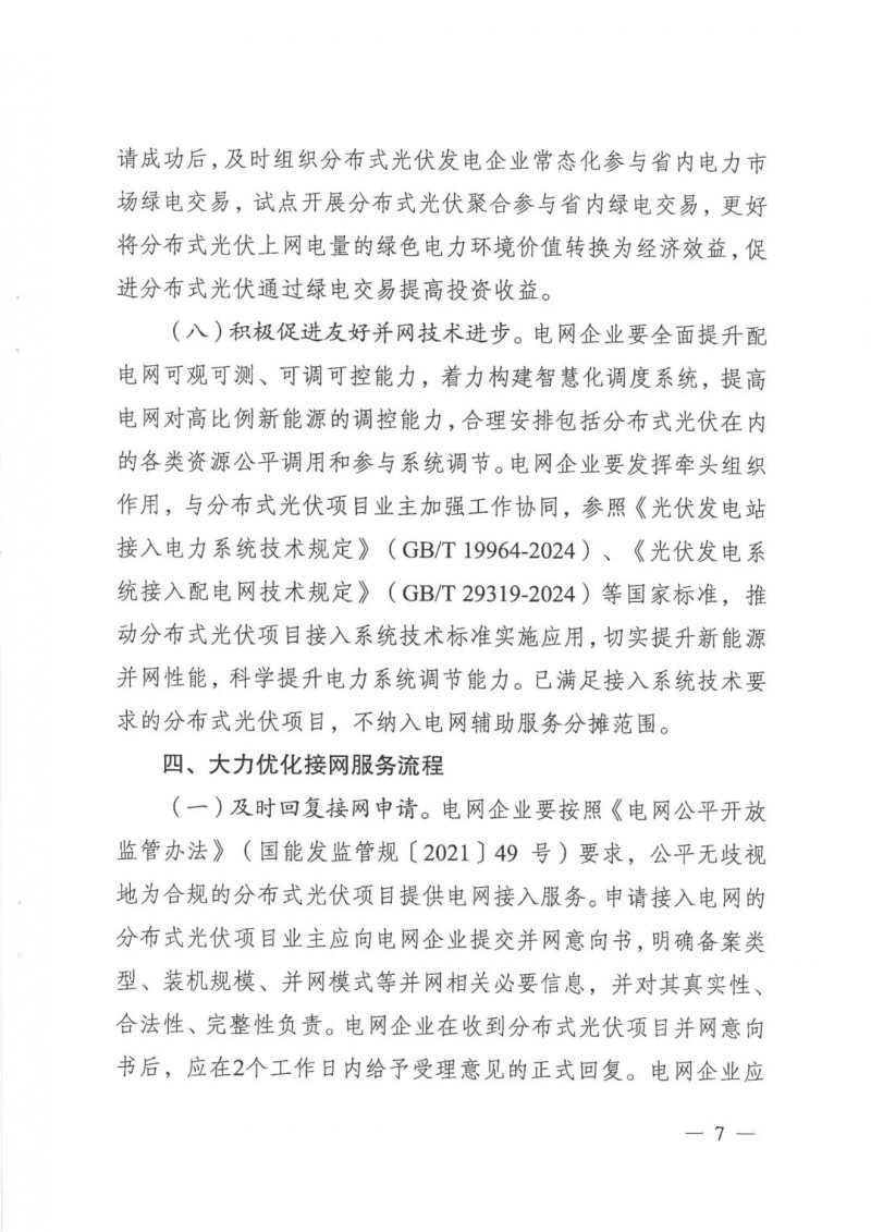 推進“一地一策”精準(zhǔn)化管理。各設(shè)區(qū)市發(fā)展改革委要組織各縣(市、區(qū))電力主管部門會同電網(wǎng)企業(yè),重點考慮未來配電網(wǎng)發(fā)展能力和電網(wǎng)承載力,結(jié)合本地電網(wǎng)乘余可接入容量,并校核上級電網(wǎng)設(shè)備安全裕度,統(tǒng)籌安排分布式光伏項目接網(wǎng)的規(guī)模和時序。新建項目申請接入容量不超過電網(wǎng)剩余可接入容量和滿足電網(wǎng)安全要求的,可依規(guī)啟動辦理接網(wǎng)流程;新建項目申請接入容量超過電網(wǎng)剩余可接入容量、不滿足電網(wǎng)安全要求的,要分析研究獨立儲能、常規(guī)電源靈活性改造、新增調(diào)節(jié)電源、終端電氣化水平等對分布式光伏接網(wǎng)能力的影響,并提出針對性解決措施后,再有序安排接網(wǎng)。