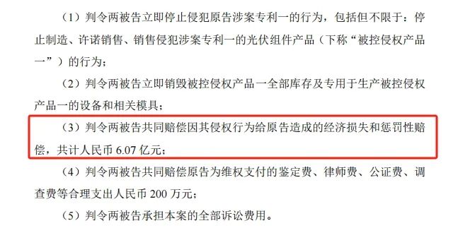 在訴訟請(qǐng)求中,天合光能向兩被告索賠金額高達(dá)10.58億元,同時(shí)要求后者承擔(dān)維權(quán)合理支出與訴訟費(fèi)用。