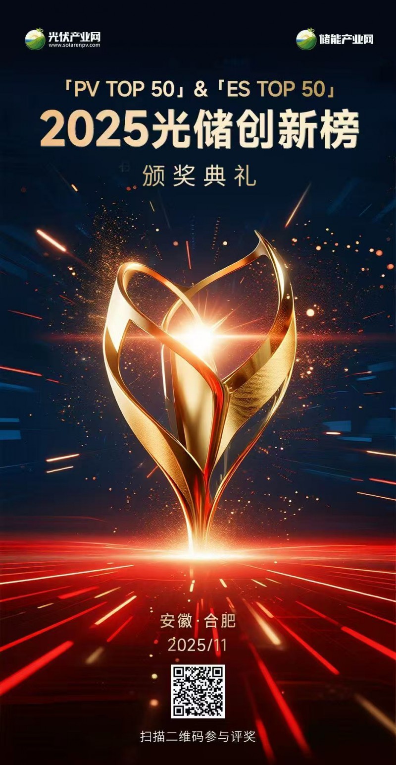 “「PV TOP 50」&「ES TOP 50」2025光儲(chǔ)創(chuàng)新榜榜單發(fā)布暨頒獎(jiǎng)典禮”將于2025年11月6-7日在安徽合肥隆重舉行。