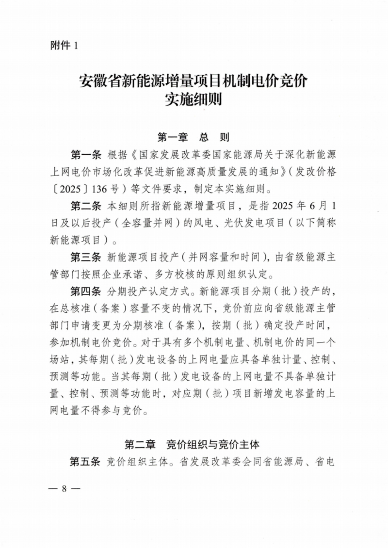 執(zhí)行期限:按同類型項目回收初始投資的平均期限確定。2025年6月1日前尚未投產(chǎn),但已通過競爭性配置(含配儲的6MW以下地面光伏電站)等方式納入年度開發(fā)建設(shè)方案的新能源項目,可單獨組織競價,由企業(yè)自愿參與。通過單獨競價納入機制的項目,其相應(yīng)儲能容量不再獲得容量補償收益。