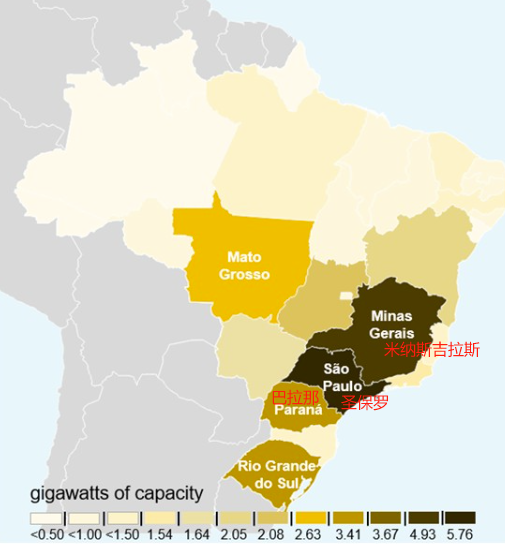 在集中式發(fā)電方面,裝機(jī)容量最大的州分別為米納斯吉拉斯州(7.41GW)、巴伊亞州(2.40GW)和皮奧伊州(2.09GW)。