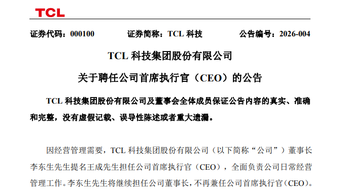 根據(jù)公告,公司創(chuàng)始人李東生雖然不再兼任CEO,但作為董事長(zhǎng)將繼續(xù)把握公司的戰(zhàn)略方向。