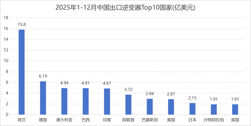 2025年1-12月光伏逆變器累計出口額:90.4億美元(同比增長9.4%)