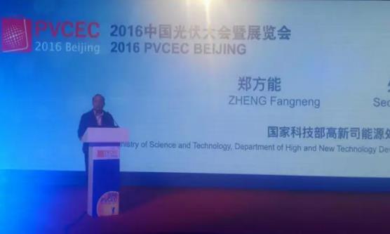 國家工業(yè)和信息化部電子信息司副司長吳勝武、國家能源局新能源與可再生能源司司長朱明、科技部高新司能源處處長鄭方能、商務部貿易救濟局副局長劉丹陽、全球太陽能理事會主席BruceDouglas以及主辦方代表中國光伏行業(yè)協(xié)會理事長、天合光能董事長兼CEO高紀凡在開幕式上發(fā)表了致辭。