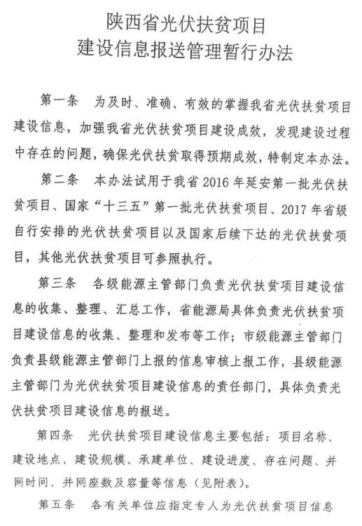 陜西省光伏扶貧項目建設(shè)信息報送管理暫行辦法