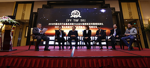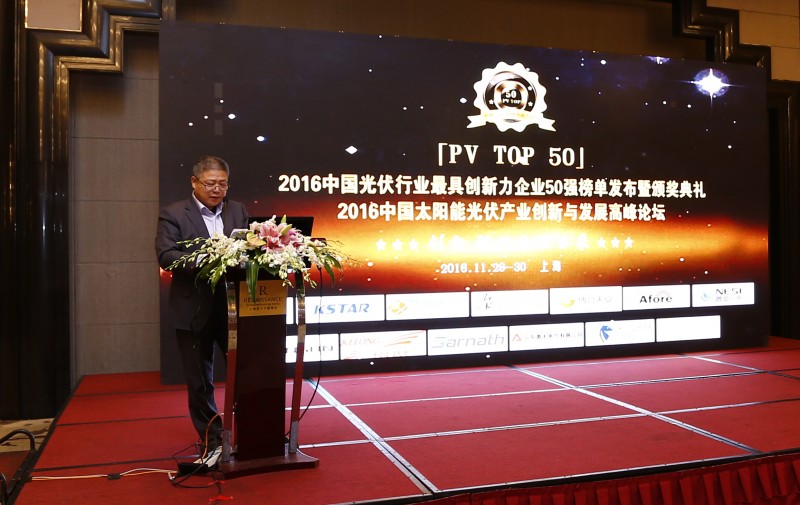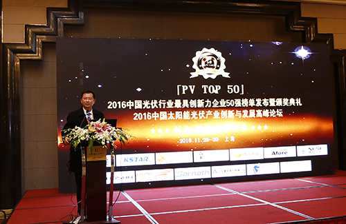 由光伏產(chǎn)業(yè)網(wǎng)主辦、中國(guó)智能光伏產(chǎn)業(yè)聯(lián)盟協(xié)辦的「PV TOP 50」2016中國(guó)光伏行業(yè)最具創(chuàng)新力企業(yè)50強(qiáng)榜單發(fā)布暨頒獎(jiǎng)典禮于2016年11月29日在上海淳大萬麗酒店隆重舉行,2016中國(guó)太陽能光伏產(chǎn)業(yè)創(chuàng)新與發(fā)展高峰論壇同期召開。