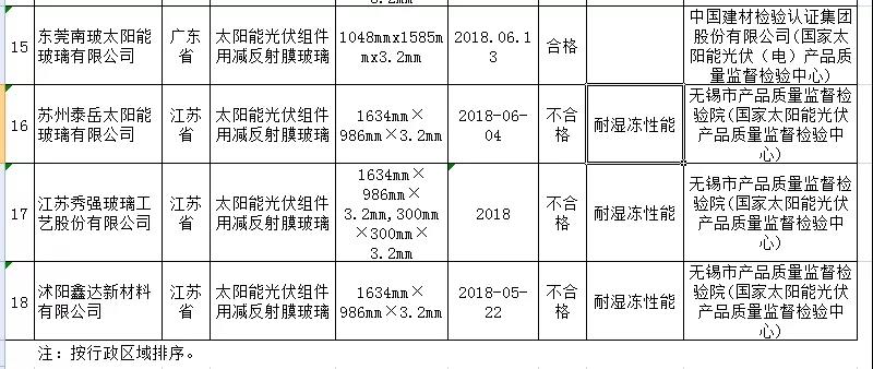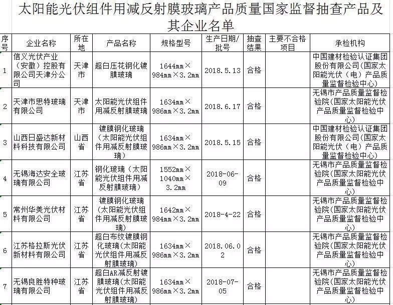 本次共抽查了天津、山西、江蘇、浙江、安徽、福建、河南、廣東等8個省、直轄市18家企業(yè)生產(chǎn)的18批次太陽能光伏組件用減反射膜玻璃產(chǎn)品。依據(jù)JC/T2170-2013(2017)《太陽能光伏組件用減反射膜玻璃》標準的要求,對太陽能光伏組件用減反射膜玻璃產(chǎn)品的碎片狀態(tài)、霰彈袋沖擊性能、光學性能、耐洗涮性能、耐中性鹽霧性能、耐濕凍性能、耐紫外性能等7個項目進行了檢驗。抽查發(fā)現(xiàn)有3批次產(chǎn)品耐濕凍性能項目不符合標準的規(guī)定。