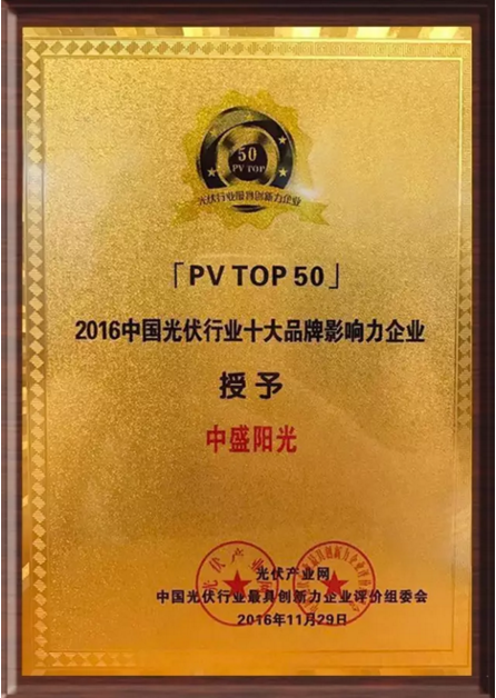 “2016中國光伏行業(yè)十大品牌影響力企業(yè)”