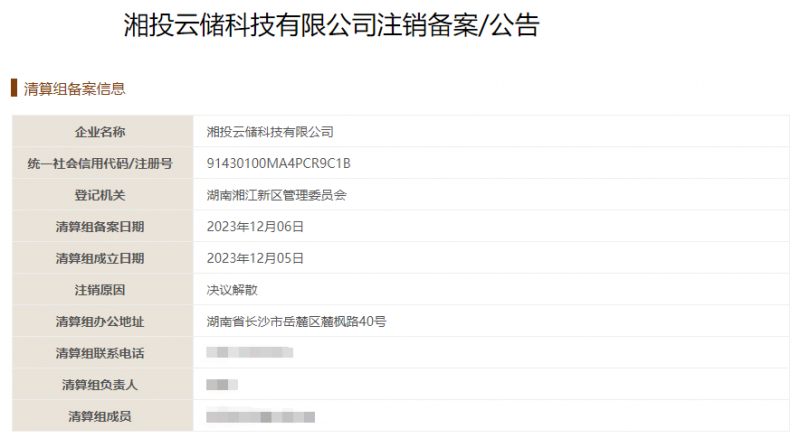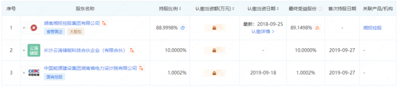 據(jù)公開信息,湘投云儲的三家股東中,湘投集團(tuán)為控股股東,長沙云濤儲能科技合伙企業(yè)對外投資僅湘投云儲一家公司。