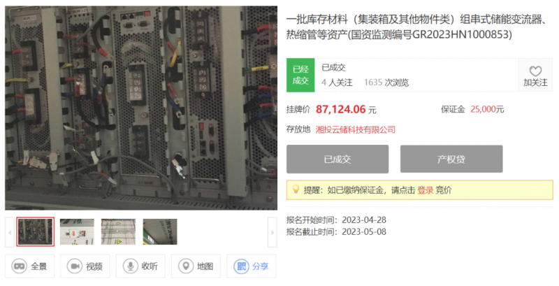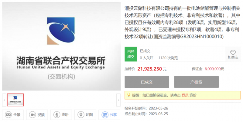 據(jù)了解,從2023年4月28日開始,湘投云儲就已經(jīng)在公開平臺拍賣其相關(guān)儲能產(chǎn)品和技術(shù)專利。