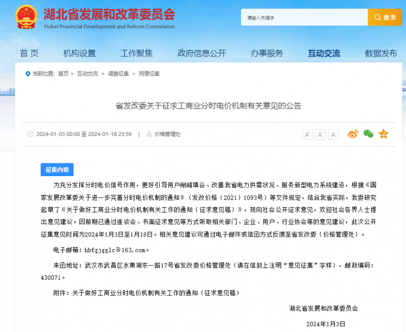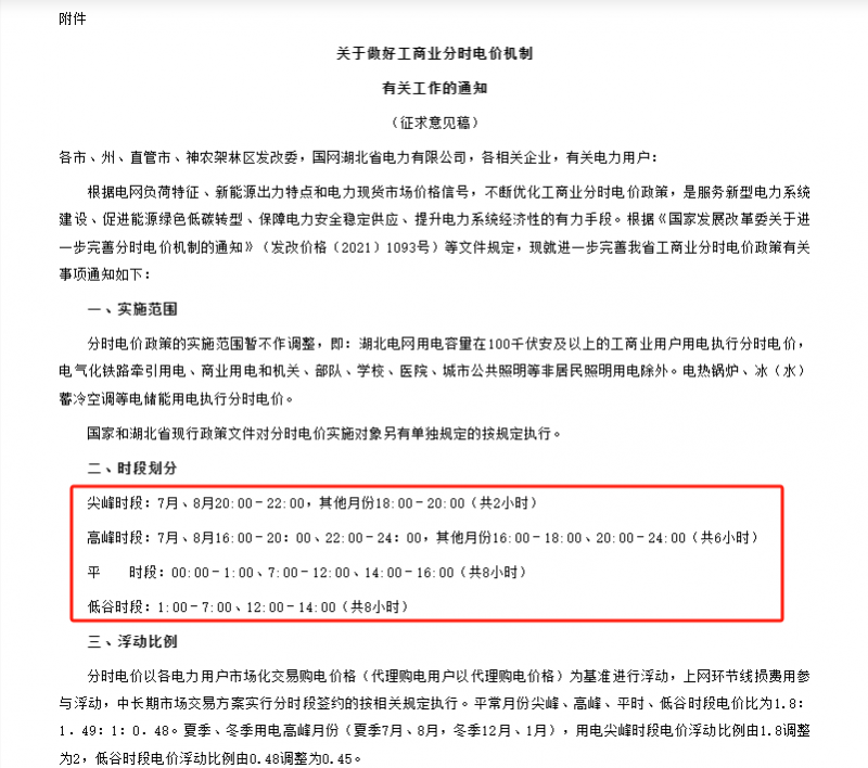 附:湖北《省發(fā)改委關(guān)于征求工商業(yè)分時(shí)電價(jià)機(jī)制有關(guān)意見(jiàn)的公告》