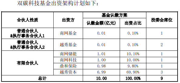 雙碳科技基金認(rèn)繳出資總額不超過人民幣10億元,投資范圍包括投向儲(chǔ)能領(lǐng)域資產(chǎn)項(xiàng)目、儲(chǔ)能領(lǐng)域成長期項(xiàng)目及經(jīng)基金投決通過的能源電力領(lǐng)域投資項(xiàng)目。