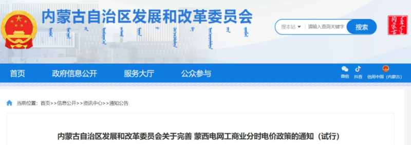 內(nèi)蒙古自治區(qū)發(fā)改委關(guān)于完善蒙西電網(wǎng)工商業(yè)分時電價政策