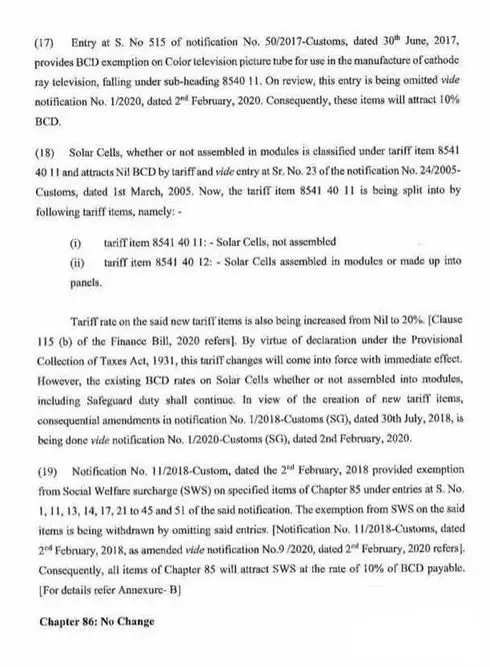 近日印度下發(fā)文件稱:從2020年2月2日開始,對進(jìn)口的太陽能電池征收20%的普遍性關(guān)稅,包括未封裝的、封裝的(制造嵌入組件中的)太陽能電池。