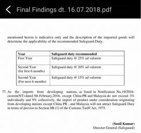 實(shí)際上,印度在2018年7月頒布了征稅2年,首年稅率25%的保障稅,自2020年1月30日起至2020年7月29日,印度的光伏保障稅降低至15%。