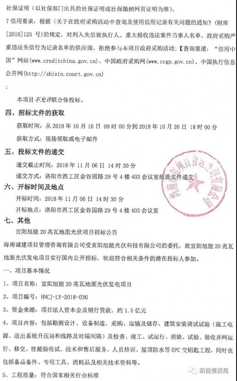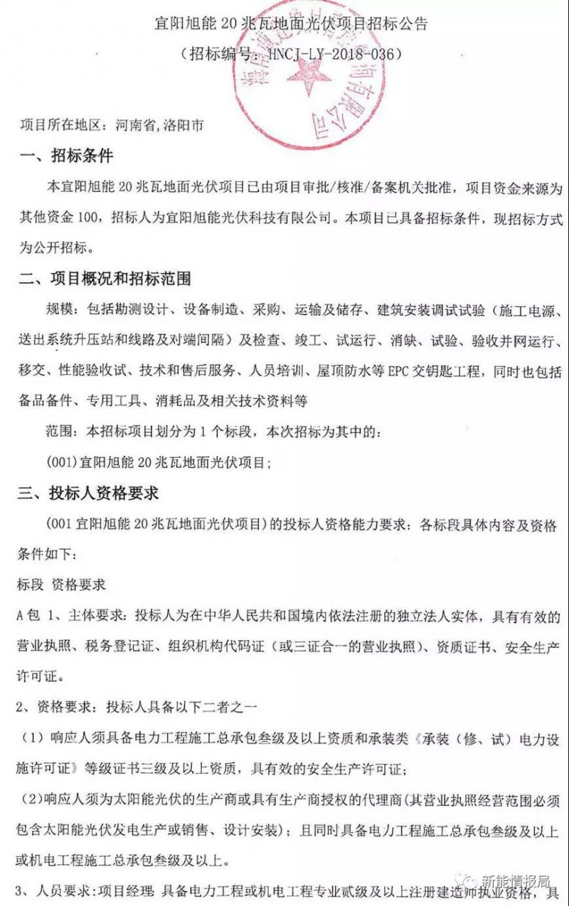 河南洛陽20MW地面光伏電站項目招標(biāo)