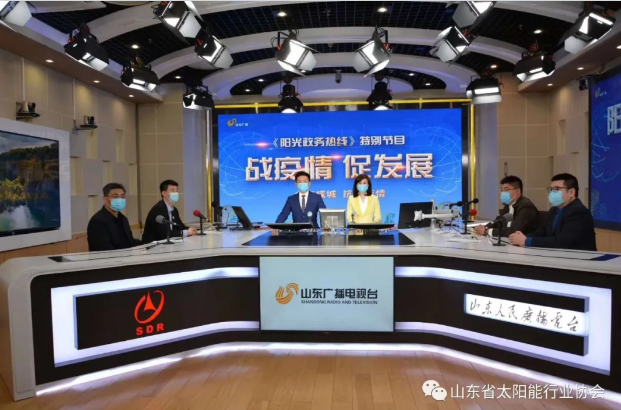 2020年3月11日,山東省太陽能行業(yè)協(xié)會(huì)秘書長彭飛和山東省太陽能行業(yè)協(xié)會(huì)執(zhí)行秘書長張曉斌作客山東廣播電視臺(tái)《陽光政務(wù)熱線》節(jié)目,就如何幫助企業(yè)有序復(fù)工復(fù)產(chǎn)、山東光伏扶貧的整體情況以及山東省太陽能領(lǐng)域未來的發(fā)展作出了解答和建議。