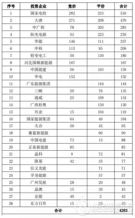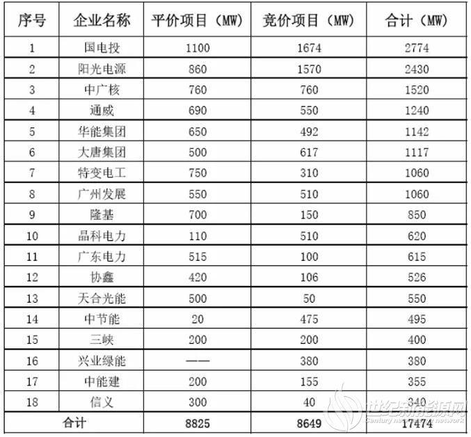 由上述表格可以發(fā)現(xiàn):投資企業(yè)共獲得8825MW平價(jià)上網(wǎng)項(xiàng)目,占第一批平價(jià)上網(wǎng)項(xiàng)目總規(guī)模的60%;共獲得8649MW競價(jià)上網(wǎng)項(xiàng)目,占此次競價(jià)項(xiàng)目總規(guī)模的38%;獲得項(xiàng)目總?cè)萘?7.5GW,占第一批平價(jià)上網(wǎng)和競價(jià)項(xiàng)目總規(guī)模的49%。而陽光電源以2430MW的項(xiàng)目規(guī)模成為僅次于國家電投的最大黑馬,力壓央企中廣核,兩者之間的競爭亦可見一斑。