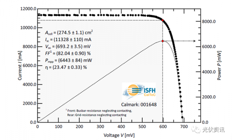 2021年7月,通威太陽能利用PERC量產(chǎn)設備,通過電池制程工藝創(chuàng)新,M6大尺寸全面積(Area=274.50cm²)電池轉(zhuǎn)化效率可達23.47%,并經(jīng)ISO/IEC 17025第三方國際權(quán)威機構(gòu)認證,創(chuàng)造了M6大尺寸全面積產(chǎn)業(yè)化PERC電池效率的世界紀錄。
