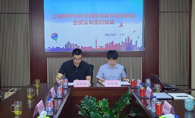 2021年8月8日,在林洋能源上市十周年之際,林洋能源全資子公司林洋創(chuàng)業(yè)投資(上海)有限公司與上海舜華新能源系統(tǒng)有限公司成立合資公司的簽約儀式在上海舉行。上海舜華董事長高頂云,副總經(jīng)理陳華強(qiáng),林洋集團(tuán)總裁、林洋能源董事長陸永華,林洋集團(tuán)副總裁方壯志、陳金敏,林洋創(chuàng)投總經(jīng)理婁與峰等領(lǐng)導(dǎo),上海氫能利用工程技術(shù)研究中心常務(wù)副主任陳海林,同濟(jì)大學(xué)副教授、氫能研究室主任呂洪以及中科院上海硅酸鹽所等相關(guān)行業(yè)專家共同出席簽約儀式。
