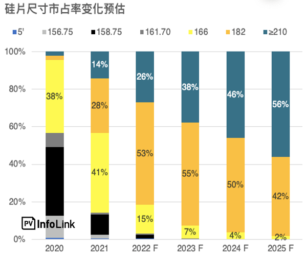 2022年大硅片市占率近80%(來(lái)源:PV Infolink光伏技術(shù)趨勢(shì)報(bào)告2022年2月)