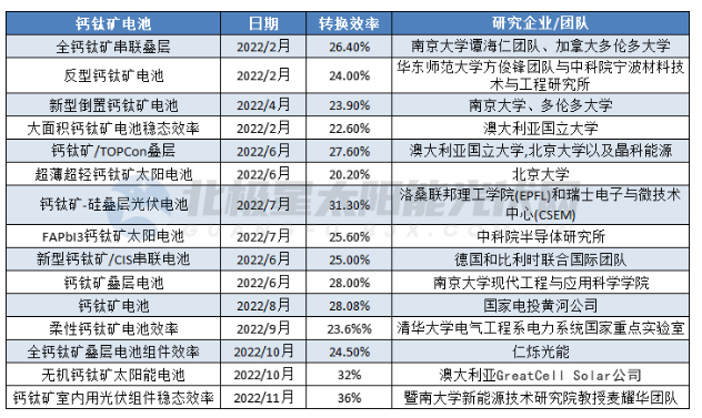 2022年8月,科技部等九部門印發(fā)《科技支撐碳達(dá)峰碳中和實(shí)施方案(2022―2030年)》,提出研發(fā)高效硅基光伏電池、高效穩(wěn)定鈣鈦礦電池等技術(shù),鈣鈦礦技術(shù)進(jìn)入被國(guó)家支持的范圍。