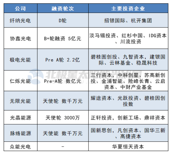 鈣鈦礦的巨大發(fā)展?jié)摿Γ擦钯Y本追捧的勢(shì)頭更加瘋狂。8月,仁爍光能宣布完成數(shù)億元Pre-A輪融資,此輪融資由三行資本領(lǐng)投,中科創(chuàng)星、蘇高新創(chuàng)投、金浦智能、險(xiǎn)峰長(zhǎng)青、云啟資本、中財(cái)產(chǎn)業(yè)基金等跟投,用于150MW鈣鈦礦組件量產(chǎn)線落地。11月,脈絡(luò)能源完成數(shù)千萬(wàn)元天使輪融資,本輪融資由國(guó)新思創(chuàng)領(lǐng)投,凡創(chuàng)資本、國(guó)華三新及高捷資本等跟投,用于中試線建設(shè)。同月,光晶能源宣布完成3000萬(wàn)元天使輪融資,本輪融資由正軒投資領(lǐng)投,創(chuàng)新工場(chǎng)、鼎祥資本跟投。12月,協(xié)鑫科技旗下協(xié)鑫光電完成5億元B+輪融資,本輪融資由淡馬錫投資、紅杉中國(guó)、IDG資本聯(lián)合領(lǐng)投,川流投資等機(jī)構(gòu)跟投。