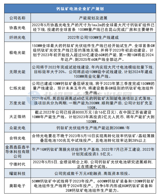 年初,纖納光電投資建設(shè)的100MW鈣鈦礦規(guī)模化產(chǎn)線建成投產(chǎn),目前公司正在規(guī)劃GW級(jí)生產(chǎn)線建設(shè),有望2023年投產(chǎn)。