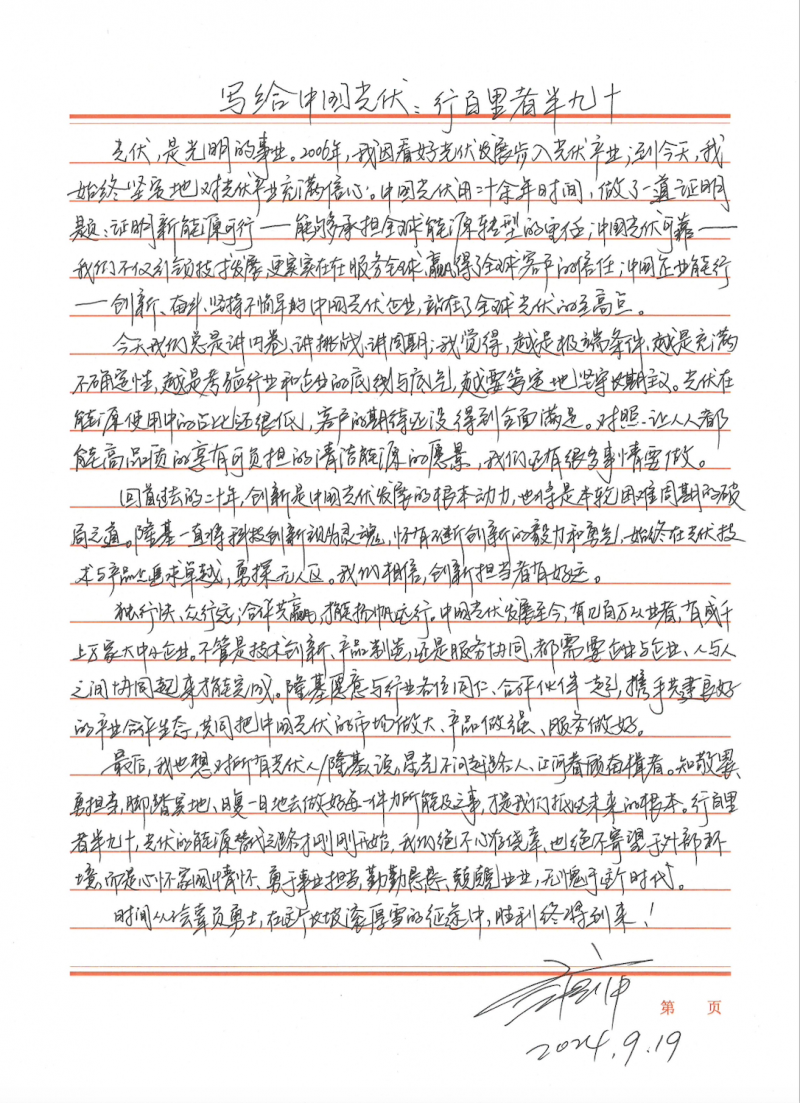 《致中國(guó)光伏的一封信》